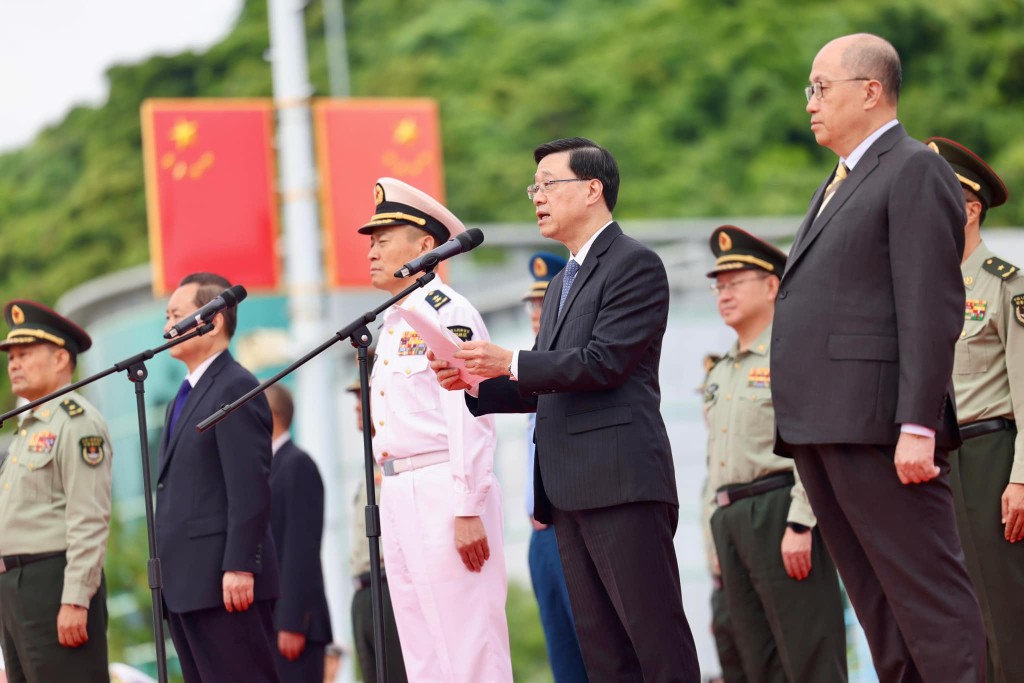 今年是國慶75周年,李家超指,“三一”艦編隊在這個特別時刻訪港別具意義,不但體現國家對香港特區的關愛和支持,更讓香港市民藉此機會親身體驗和了解國家多年來在國防和軍隊現代化建設取得的重大成就,以及國家人民解放軍的風采面貌。