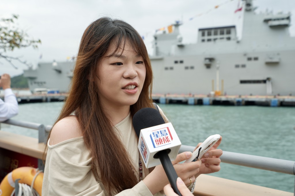 他又指今次是第一次近距離看到軍艦,感覺艘艦比想象中更雄偉,形容機會難得,心情激動,“我激動得都要哭出來了,國家軍事實力增強,希望香港的同胞們也能一起來感受下,真的非常興奮!”