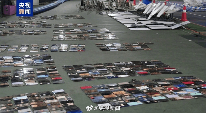 ▲緬甸當陽地區首次,1079名實施跨境電信網絡詐騙疑犯被抓獲,搜出相關的詐騙工具。 央視截圖