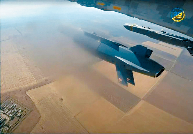 ▲烏克蘭空軍發布的照片顯示,烏軍向俄境發射一枚英制“暴風之影”長程巡航導彈。