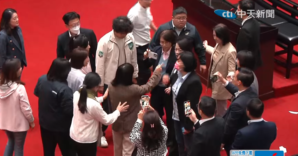 ▲“立法院”國民黨團、民眾黨團提案成立“郭智輝調查委員會”、“臺發基金調查委員會”,藍綠“立委”爆發沖突。(截自中天新聞直播)