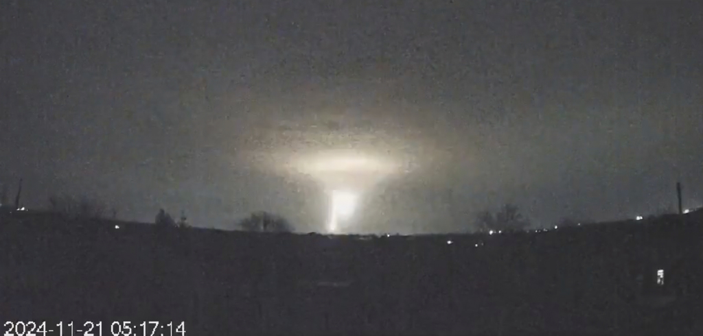 烏克蘭空軍方周四初步聲明,這枚導彈是洲際彈道導彈(ICBM),烏克蘭媒體指稱是俄制RS-2“邊界”(Rubezh)導彈。俄國總統普?。╒ladimir Putin)周四證實,當天上午俄方對烏克蘭發射一枚新開發的高超音速導彈“榛果樹”(Oreshnik,Hnazel Tree),攻擊烏克蘭第聶伯羅市(Dnipro)一處軍事設施。普丁稱這是中長程彈道導彈(IRBM),美國、北約也認同這項描述。
