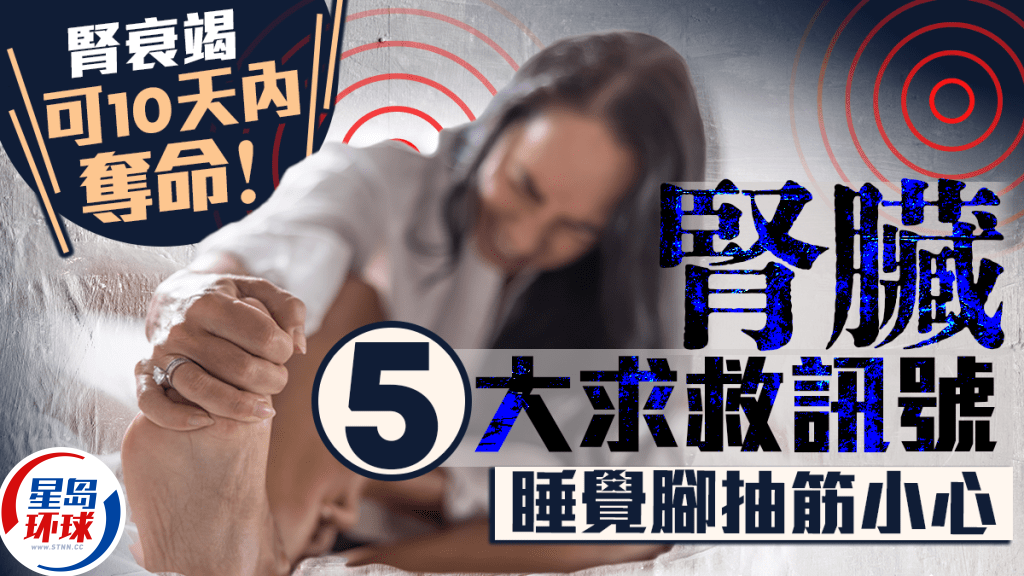 睡覺時經常腳抽筋,可能是腎衰竭先兆! 有醫生警告,腎臟功能下降會影響全身各大器官,嚴重時10天內可致命! 身體若出現5種變化,很可能代表腎臟已受損,宜盡快就醫檢查。