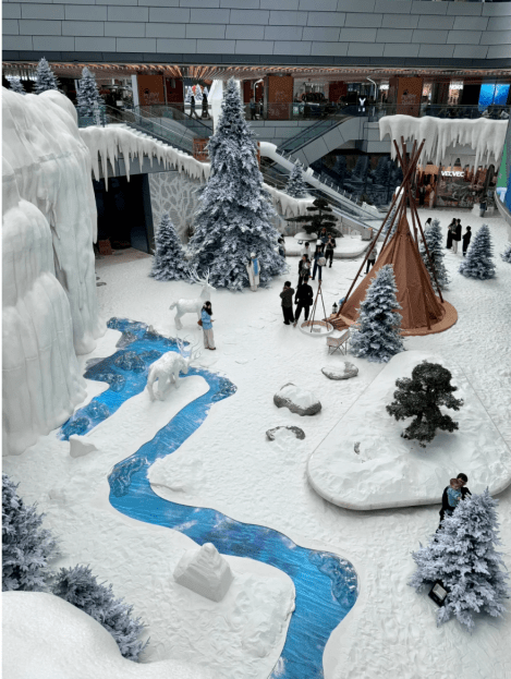 于今個冬天在商場內打造冰雪造景