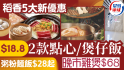 煲仔飯是廣東地區的經典美食之一,以其香氣撲鼻的米飯和多樣配料深受食客喜愛?,F時,一粥面推出令人心動的早鳥優惠,即日起,上午11時至12時或5時至6時到一粥面分店,即可以$48享用臘腸滑雞煲仔飯,香濃臘腸搭配嫩滑雞肉,再加上粒粒分明的煲仔飯,經過煲底的炭火慢煮,讓每一口都帶有焦香的鍋巴味。想要外賣享用的話,亦可以選擇額外加$6,將原煲煲仔飯帶回家。