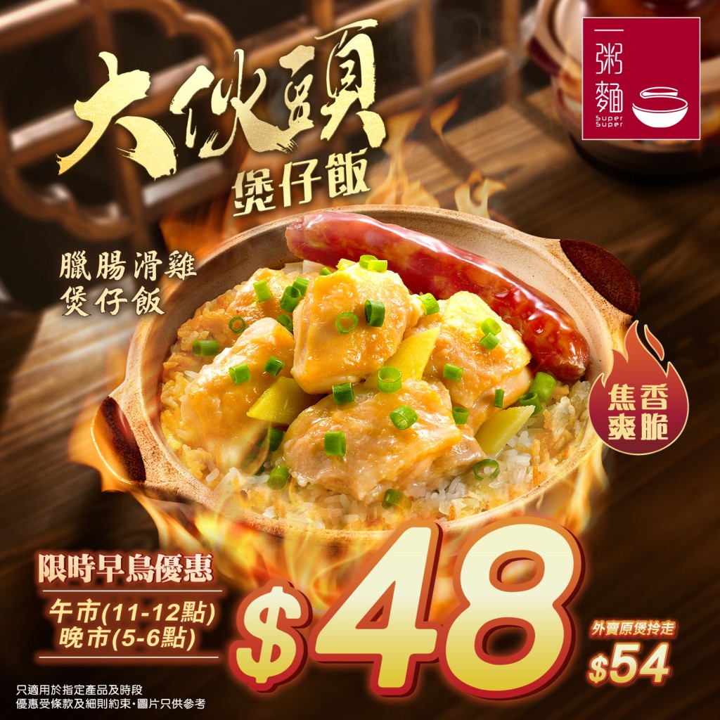 一粥面煲仔飯|3. 臘腸滑雞煲仔飯$48 每日兩時段特價供價