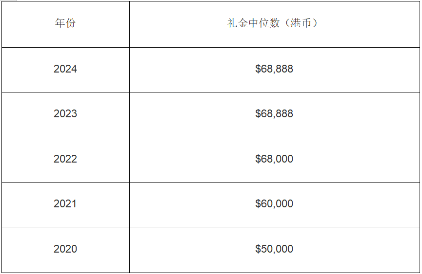 至于禮金方面,今年中位數維持在$68,888,并未為新人帶來額外的經濟壓力。這個金額不僅象征著“順利”與“發”的美好寓意,更是對新人的祝福,期望他們未來事事順心如意。