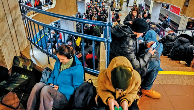 ▲俄羅斯周四大規??找u烏克蘭的能源基礎設施,基輔市民進入一個地鐵站避難。