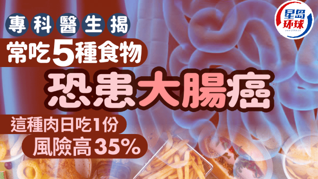 【大腸癌成因/癌癥/致癌食物】大腸癌為全球第2大致命癌癥,近年個案增多!有醫生指出,常吃5類容易傷及胃腸道系統的食物,恐引發大腸癌。若每日吃1種肉,風險高達35%!