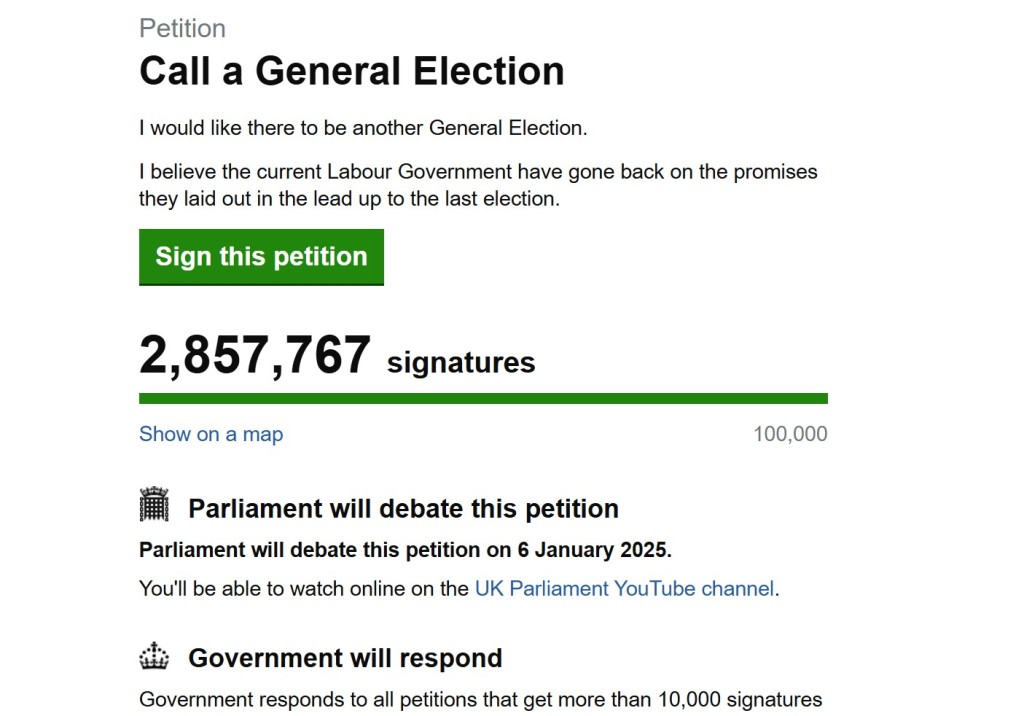 日前有英國人在國會官方網站發起聯署,要求提早大選,目前已有逾285萬人英國人簽署。