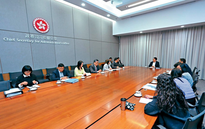 ▲政務司司長陳國基主持跨部門會議,統籌和指示各部門作好準備。