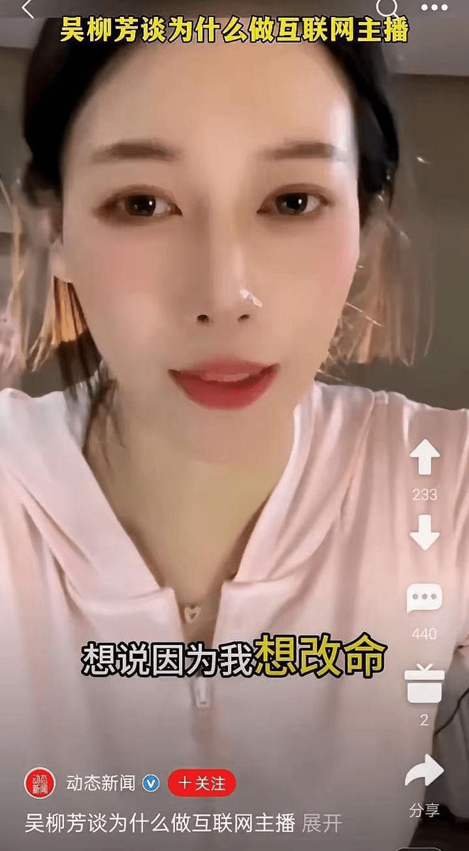 另外,一段風波前吳柳芳直播時講述自己心酸歷程的影片亦在網上廣傳。大概的內容就是她曾簽了工會做直播,每天播滿6小時,保底三四千元(人民幣,下同),因為沒什么直播內容,也沒什么人看,就播不下去了。然后又去做老師,結果到最后老板拖欠工資,又做不下去了。后來,又去體校當教練,一開始說有編制,結果做了兩年沒讓進,讓別人先進了。為了生活沒辦法又開始做直播。