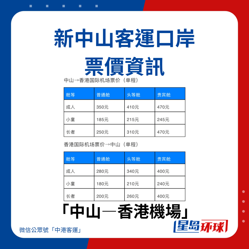 · 蛇口航線:成人普通艙票價從80元調整至65元。