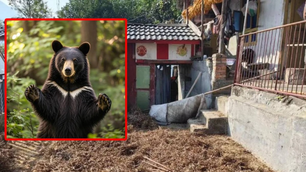 四川有民居被黑熊闖入,攻擊女戶主,被丈夫用斧頭斬殺。