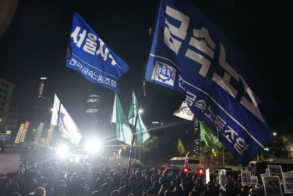 大量民眾聚集在韓國首爾國民議會前,要求韓國總統尹錫悅下臺。