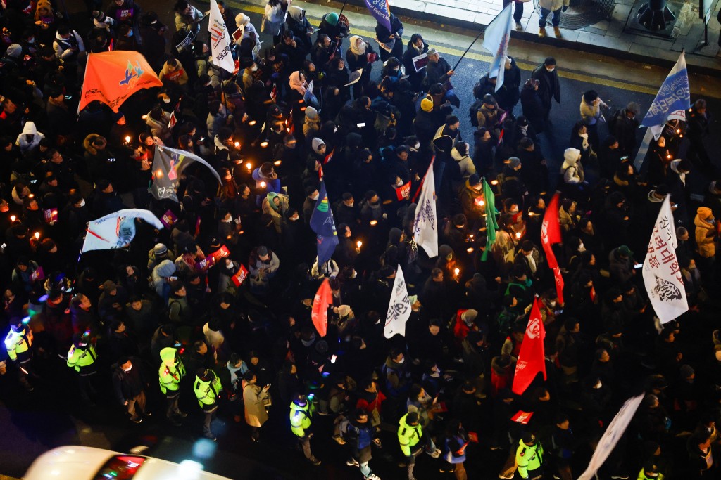 【10:10】韓國最大工會發動“總罷工”,直到尹錫悅辭職。擁有120萬會員的 “全國民主勞動組合總聯盟”指責尹錫悅采取“不合理和反民主的措施”“宣告他的權力的終結”,并號召總罷工。
