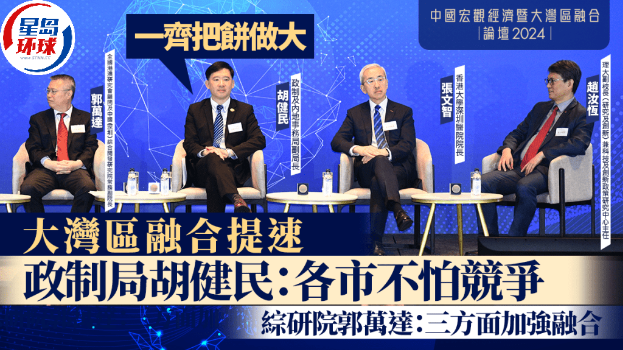 星島新聞集團主辦“中國宏觀經濟暨大灣區融合論壇2024”今日(6日)舉行,粵港澳大灣區正加速融合發展,抓緊大灣區使命,銜接國家戰略新趨勢屬香港一個重要任務。