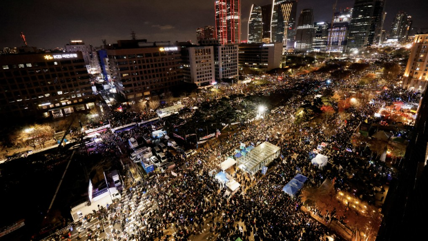 韓國國會就尹錫悅彈劾案投票之際,近15萬人聚集在國會外參加支持彈劾的集會,要求總統尹錫悅下臺。