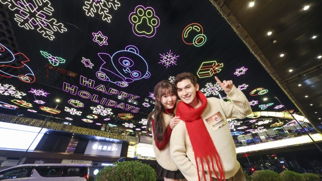 尖東一帶的酒店、大廈以及天橋每到圣誕節都會點亮外墻燈飾,至今已踏入第42個年頭,亦是一家大細于圣誕佳節必備活動。尖沙咀中心與帝國中心展出全新的數碼光影藝術作品,可愛熊貓現身于光影幕墻,麼地里一帶延續動畫作品,熊貓與迷人雪花在傳統燈飾下閃耀。至于千禧新世界香港酒店以環保燈泡砌出金光閃閃“垂珠”,配上紅綠燈飾,亮麗耀眼;麼地道3條天橋穿起圣誕裝束,以閃亮燈飾與大家度過“紫色圣誕”。