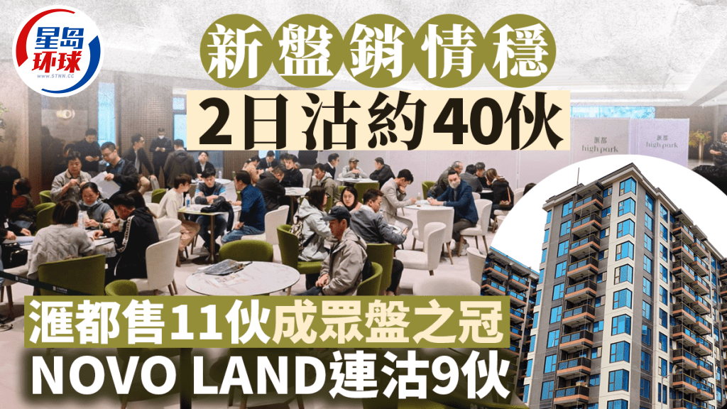 過去周末未有焦點盤推售,發展商主力銷售貨尾,除元洪水橋匯都銷情理想外,新地屯門NOVO LAND 3B期亦連沽9伙,總括過去2天新盤共售約40伙。