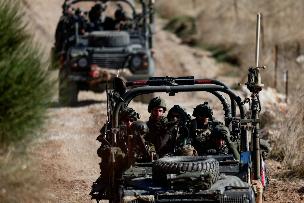 敘利亞變天,以色列總理內塔尼亞胡8日證實,已下令軍隊暫時接管以、敘兩國在戈蘭高地的非軍事緩沖區。 圖為8日在戈蘭高地以敘?;鹁€附近的以軍。 (路透社)