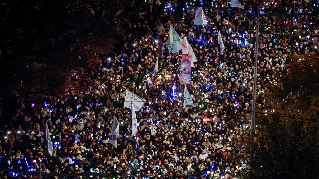 上周南韓民眾集會支持彈劾尹錫悅,迫爆國會外的大道。