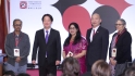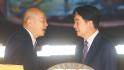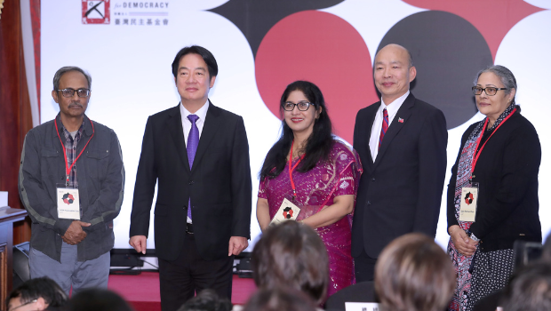 賴清德(左二)、韓國瑜(右二)10日一同出席臺灣“第十九屆亞洲民主人權獎頒獎典禮”,兩人并肩而坐、多次交頭接耳。