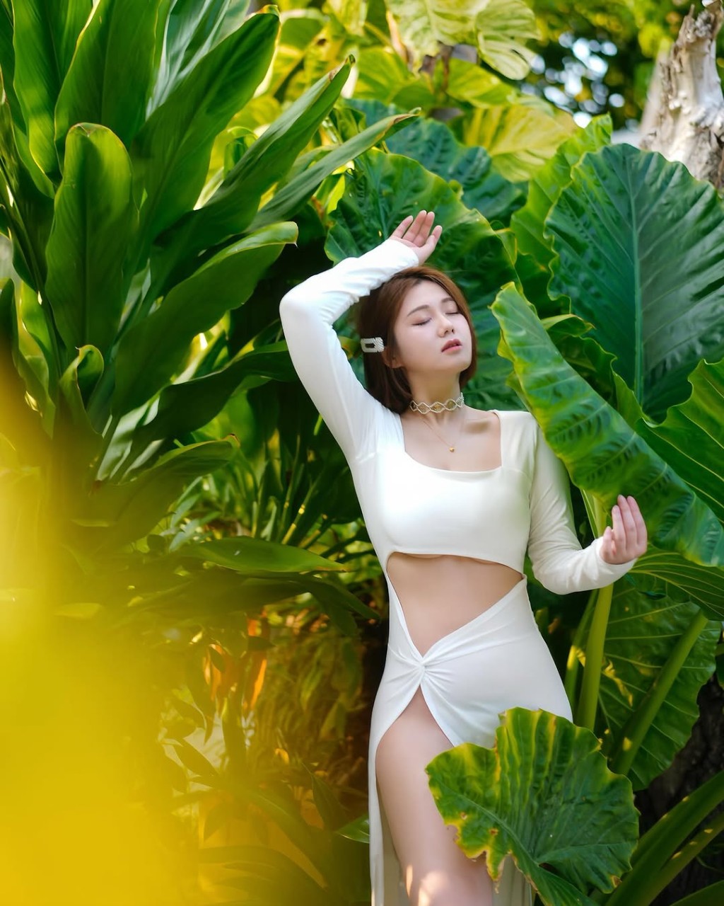 日前,白云在IG上發佈了多張赴馬爾代夫浮潛的寫真,并留言:“把我的秘密留在熱帶的島嶼,只帶走大海的秘密?!闭掌锌梢钥吹桨自粕泶┌咨L袖開衩連身裙在沙灘上擺出各個性感pose,胸下的三角形剪裁露出她的白皙小蠻腰,而且上身僅以半塊布遮蓋的渾圓上圍,下身極高衩的設計,盡騷白滑長腿,白云更疑似“真空”上陣,不少網民指看得人臉紅心跳。其后白云又曬出兩張在樹林中的靚相,以兩塊樹葉作為前景遮擋“三角位置”,整個畫面更顯美感。
