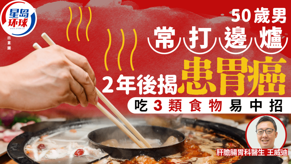 打邊爐也有致癌風險? 有醫生分享病例指,一名年約50歲男子經常打邊爐,其后排黑便,2年后求醫后確診患上胃癌。 醫生提醒,常吃3類食物容易增加風險。
