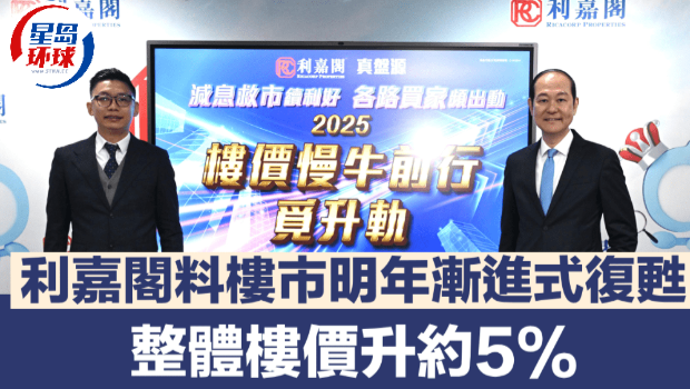 影響樓市走勢的利淡因素爭持,利嘉閣總裁廖偉強預計,樓市明年漸進式復甦,整體樓價升約5%,市場繼續由一手新盤主導,料錄1.8萬宗。其中較睇好北部都會區及啟德區后市走勢。