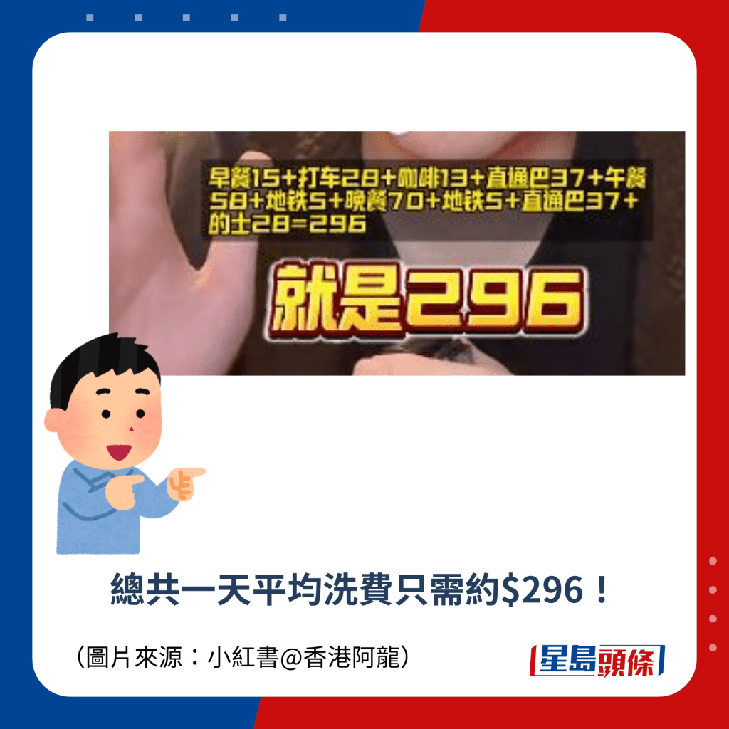 每日吃早、午、晚餐,加跨境交通,平均每天洗費只需$300?!