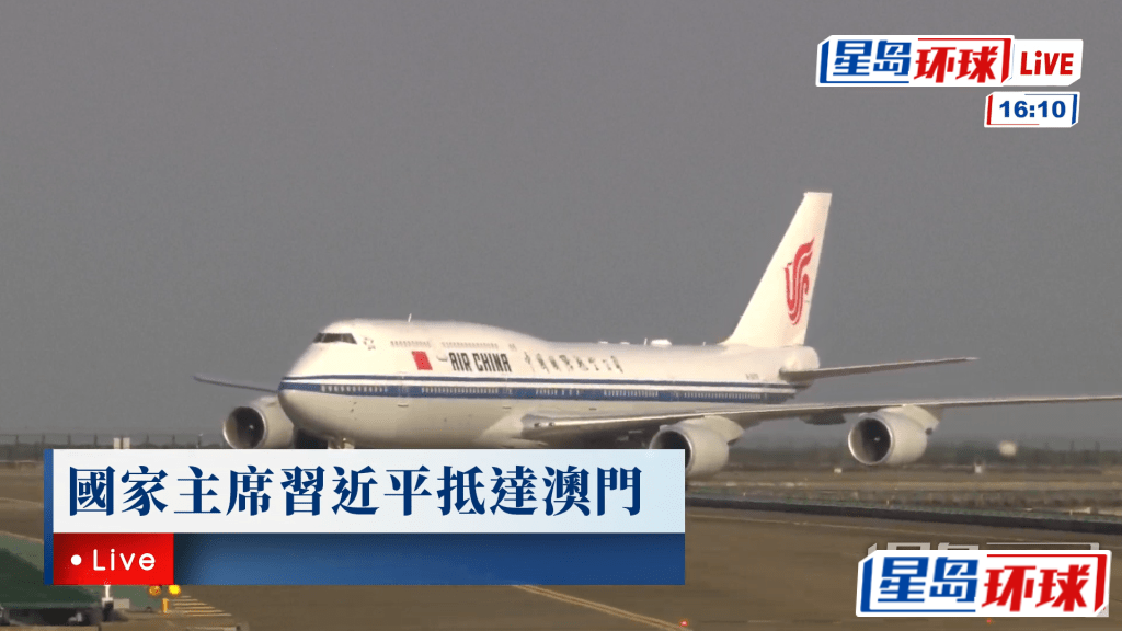 國家主席習近平乘坐的專機抵達澳門機場。