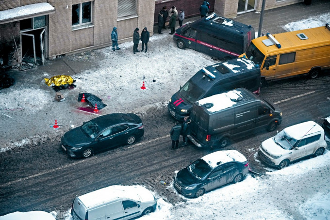 ▲俄調查人員周二在基里洛夫遇刺身亡地點調查。