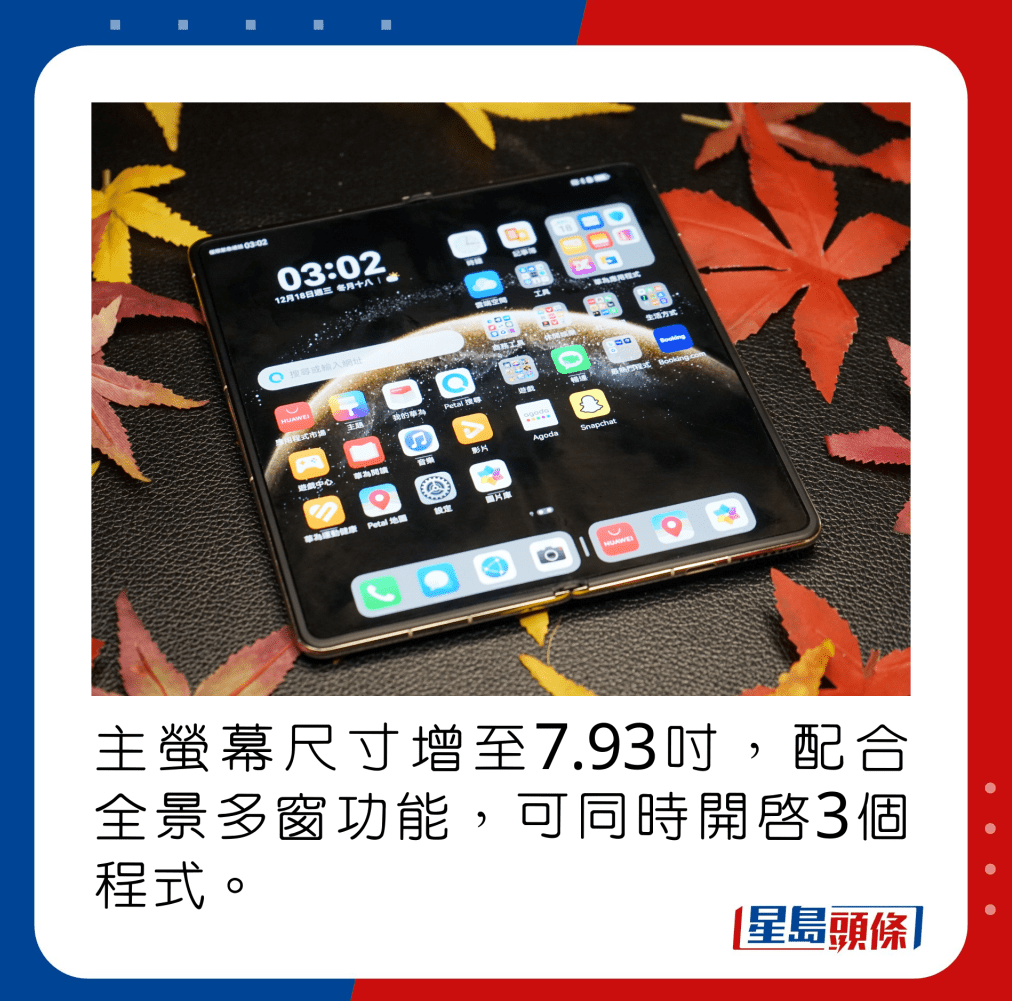 主屏幕尺寸增至7.93吋,配合全景多窗功能,可同時開啟3個程序。