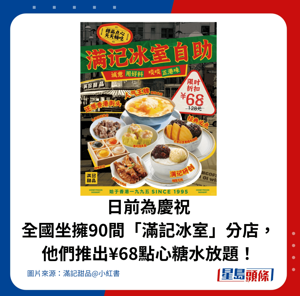 日前為慶祝全國坐擁90間「滿記冰室」分店,他們推出¥68點心糖水放題!
