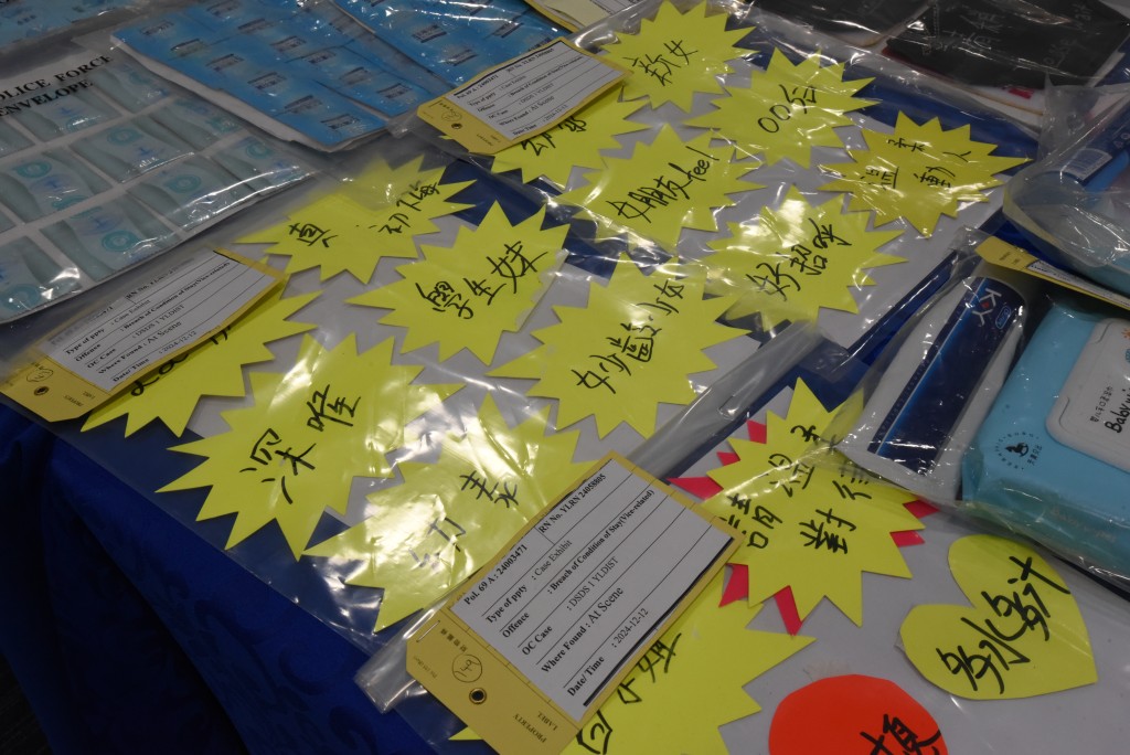 警方展示賣淫單位宣傳物品。 黃文威攝