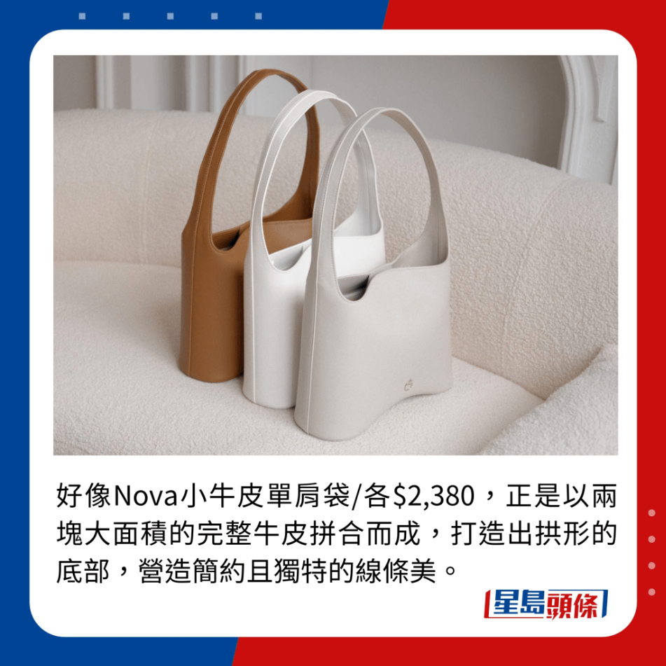 品牌由香港設計師Letitia及英國設計師 Helen Robotham-Vásquez一同創立,二人從亞洲女士身形及皮革剪裁入手,并從自然世界擷取靈感,主打柔和感的簡約曲線外形,寓意在喧囂的都市中尋找內心的寧靜。好像Nova小牛皮單肩袋,正是以兩塊大面積的完整牛皮拼合而成,打造出拱形的底部,營造簡約且獨特的線條美。