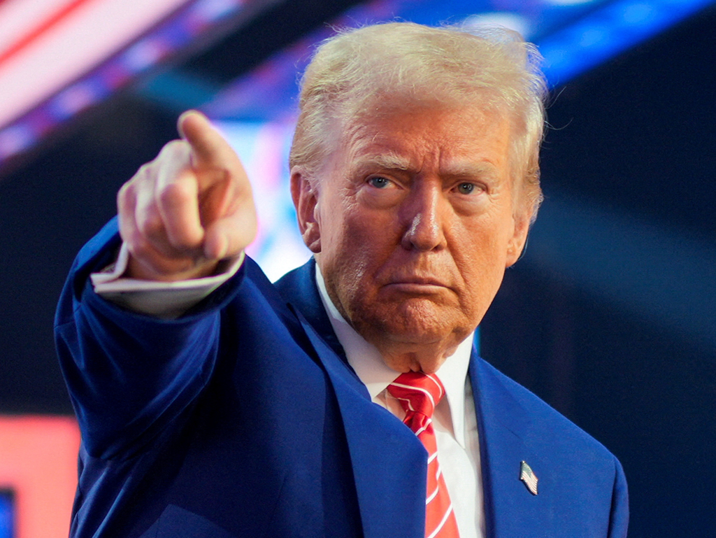 ▲美國準總統特朗普22日“美國轉捩點”(Turning Point USA)在亞利桑那州鳳凰城舉辦的保守派年度盛會中發表談話。(路透)