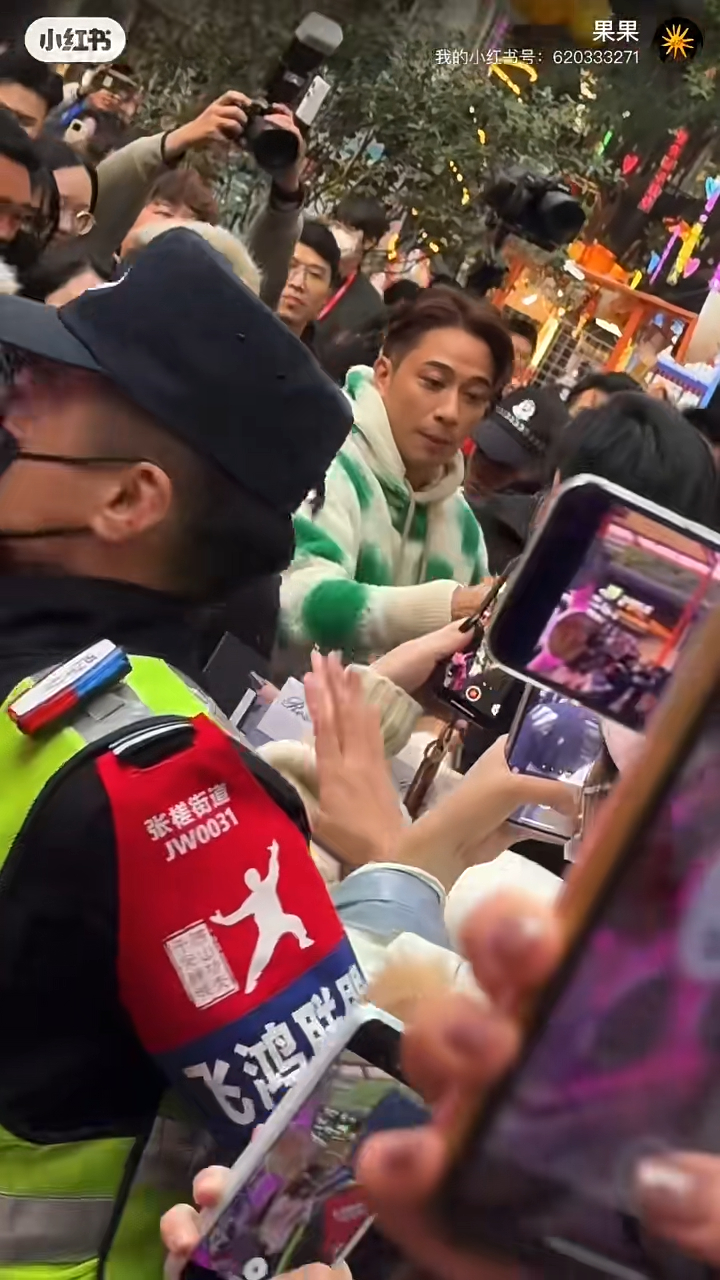 另有女狂迷在小紅書貼片,表示:“吳好ong!現場太擠有人跌倒了”,結束活動后,吳卓羲離開商場時看到整條街都塞滿粉絲,他都驚呆了,他被保安及工作人員開路離開,期間吳卓羲都有拋出金句“唔好ong”并邊行邊舉起手向粉絲打招呼時,該女狂迷竟一手捉實偶像手仔,更截圖貼在留言區,興奮說:“是我的手抓住了”,有網民笑女狂迷懂得把握時機,“笑死,你也是懂抓住機會的”。