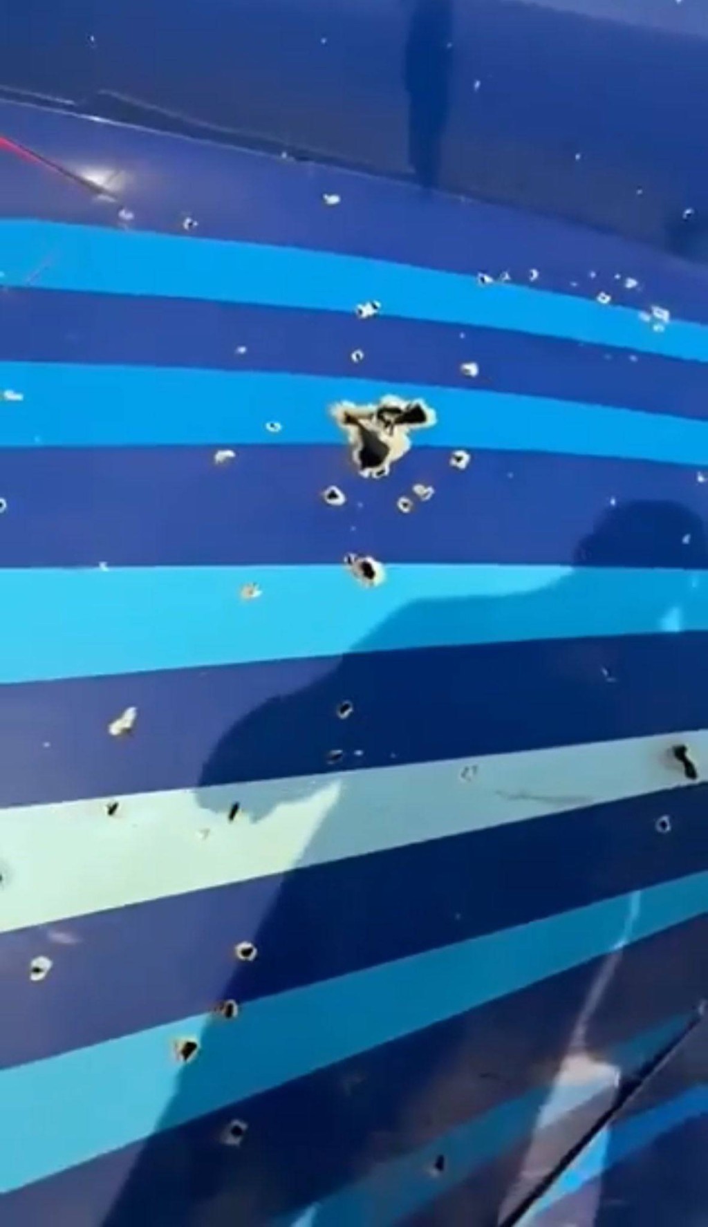 ▲網絡流傳出事航班機體外有多處不孔洞。x