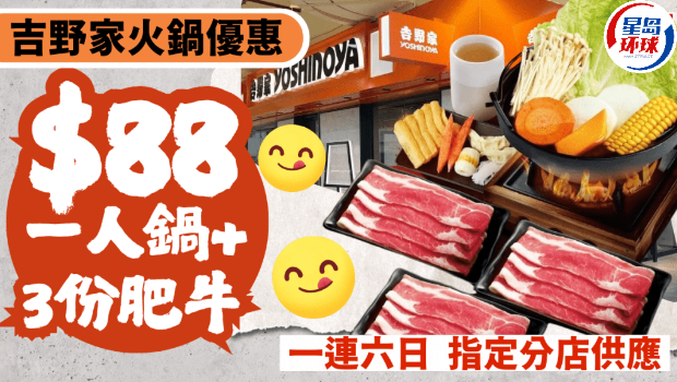 • 吉野家火鍋優惠?| 一人邊爐一配3份肥牛限定價$88,一連六日/指定分店供應