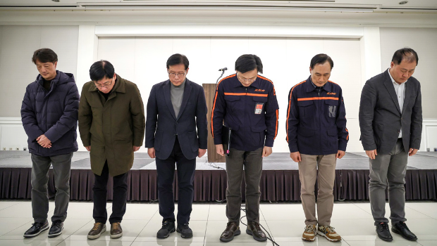韓國濟州航空編號7C2216客機墜毀,目前只救出2人,其余179人推斷罹難。濟州航空代表理事金利培(Kim E-Ba)今(29)日中午召開記者會,率領高層鞠躬致歉,表示對乘客及罹難者家屬“致上最深切哀悼及歉意”,他也表示失事客機沒有異?,F象。