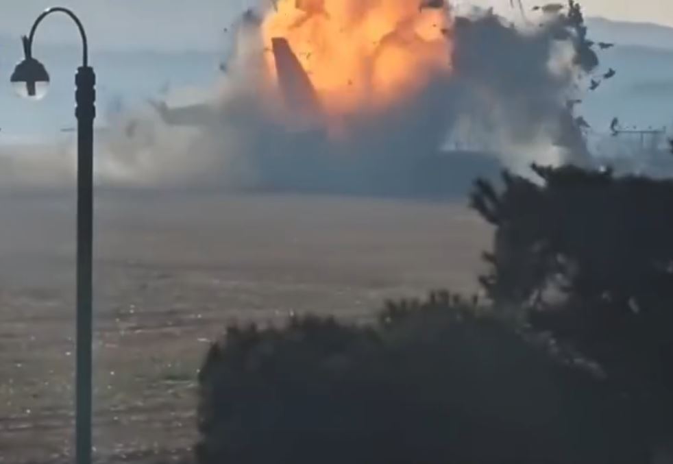 ▲客機撞上圍墻爆炸一刻。影片截圖