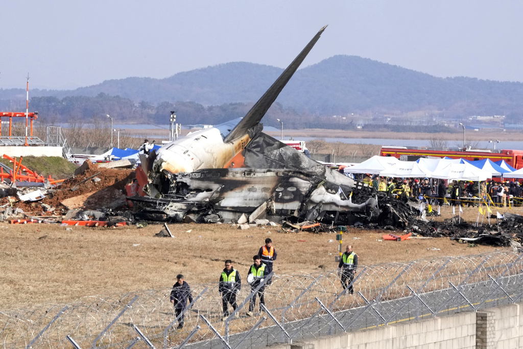 ▲韓國濟州航空編號7C2216客機29日上午墜毀韓國務安國際機場,官員表示,塔臺曾警告鳥擊,機長后續發布“Mayday”求救訊號,不過客機仍在機長求救5分鐘后墜毀。(美聯社)