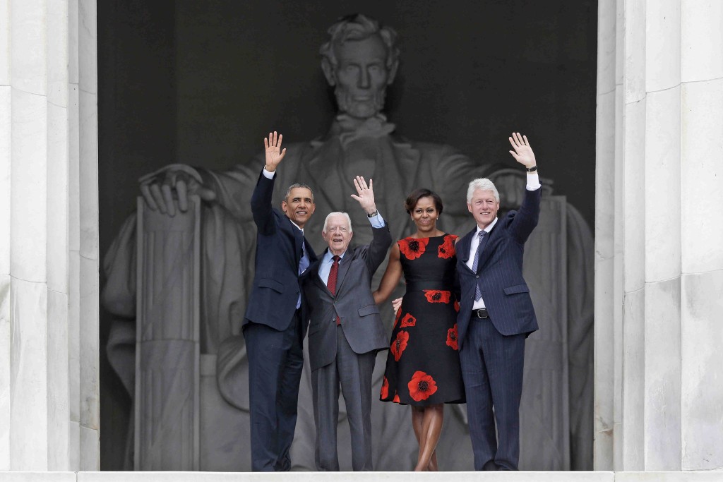 ▲奧巴馬夫婦和克林頓都對卡特致敬。美聯社