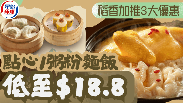 • 稻香早午市下午茶3大折扣,點心/粥粉面飯低至18.8港元
