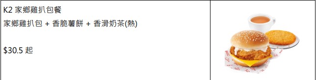 另外,過了11時后,在午餐及下午茶時段,都繼續以“肯!抵 DEAL”超值價格供應以下優惠餐點: