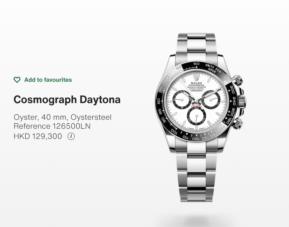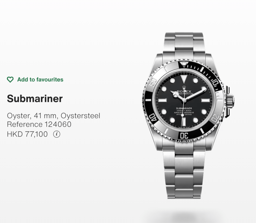 鋼款加幅較少,例如Cosmograph Daytona由1.55萬歐元加至1.6萬歐元,加價約3%,香港官網的售價則為12.93萬港元;“水鬼”Submariner則加價1.6%至9,500歐元,香港索價7.71萬港元。