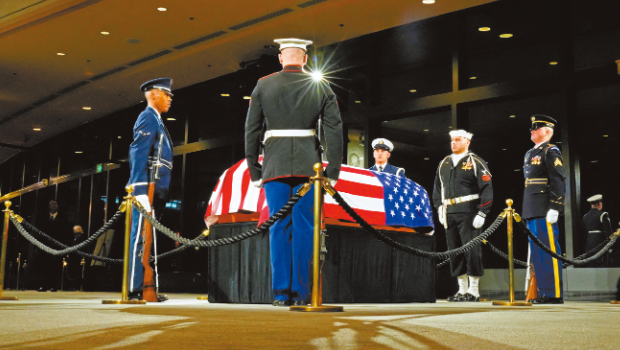 ▲前總統卡特歷時6天的國葬活動正式開始,其靈柩已移往亞特蘭大卡特中心,停放當地供民眾瞻仰,接著會轉送首都華盛頓,最后運返家鄉入土為安。 美聯社