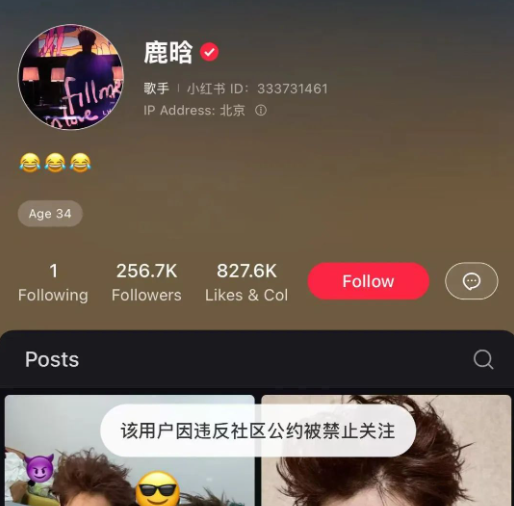 紅星新聞查詢到,截至發稿前,鹿晗個人微博、小紅書、抖音均已無法關注,部分平臺顯示理由為“該用戶違反法律法規”。
